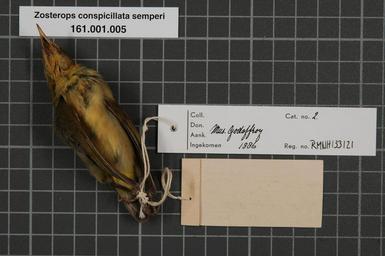 | Keywords: Naturalis Biodiversity Center - RMNH.AVES.133121 2 - Zosterops conspicillata semperi Hartlaub, 1868 - Zosteropidae - bird skin specimen.jpeg artwork Dimensions artwork Document type Zosteropidae Zosterops Individual count 1 Infraspecific epithet semperi Infraspecific rank Institution Naturalis Kind of unit artwork Kind of unit specimen skin Life stage adult W Caroline Palau Islands Medium artwork Nomenclatural code Occurrence ID page Other fields Other versions artwork Permission license Naturalis donation CC-0 Publication location Scientific name Zosterops conspicillata semperi Hartlaub 1868 Scientific name authorship Hartlaub 1868 Source url http //bioportal naturalis nl Specific epithet conspicillata State or province Subject keywords artwork Subject keywords publication Title artwork Title publication Type status Uploaded with GWToolset Naturalis_Biodiversity_Center_-_RMNH AVES 133121_2_-_Zosterops_conspicillata_semperi_Hartlaub _1868_-_Zosteropidae_-_bird_skin_specimen http //medialib naturalis nl/file/id/RMNH AVES 133121_2/format/large Media donated by Naturalis Biodiversity Center Songbird specimens at Naturalis Biodiversity Center Zosterops conspicillatus Zosterops |