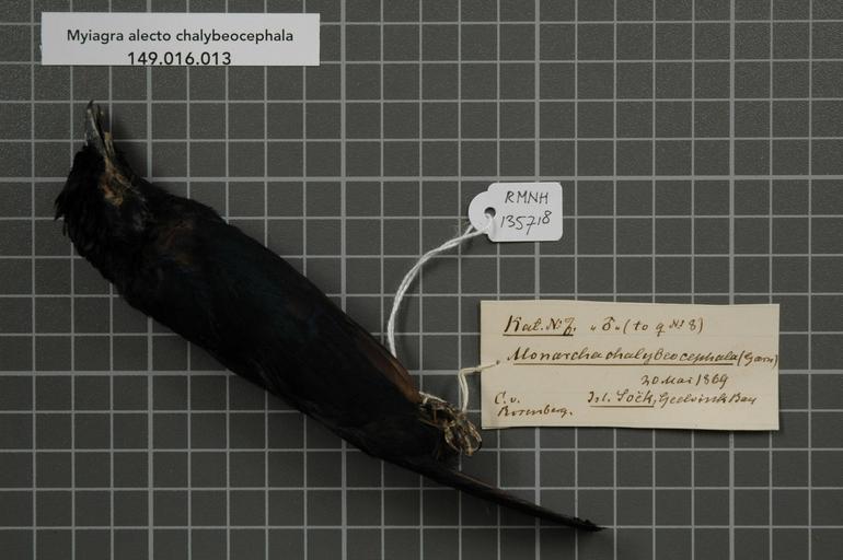 | Keywords: Naturalis Biodiversity Center - RMNH.AVES.135718 1 - Myiagra alecto chalybeocephala (Garnot, 1828) - Monarchidae - bird skin specimen.jpeg artwork Dimensions artwork Document type Monarchidae Myiagra Individual count 1 Infraspecific epithet chalybeocephala Infraspecific rank Institution Naturalis Kind of unit artwork Kind of unit specimen skin Life stage Geelvink Bay Isl Soëk Medium artwork Nomenclatural code Additional FAMILY INFO to female N 18 Sex remark male Occurrence ID page Other fields Other versions artwork Permission license Naturalis donation CC-0 Publication location Scientific name Myiagra alecto chalybeocephala Garnot 1828 Scientific name authorship Garnot 1828 male Source url http //bioportal naturalis nl Specific epithet alecto State or province Subject keywords artwork Subject keywords publication Title artwork Title publication Type status Uploaded with GWToolset Naturalis_Biodiversity_Center_-_RMNH AVES 135718_1_-_Myiagra_alecto_chalybeocephala_ Garnot _1828 _-_Monarchidae_-_bird_skin_specimen http //medialib naturalis nl/file/id/RMNH AVES 135718_1/format/large Media donated by Naturalis Biodiversity Center Songbird specimens at Naturalis Biodiversity Center Myiagra alecto museum specimens |