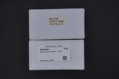 | Keywords: Naturalis Biodiversity Center - RMNH.MOL.149078 1 - Nerita morio (Sowerby, 1833) - Neritidae - Mollusc shell.jpeg artwork Dimensions artwork Document type Neritidae subfamily Neritinae Nerita Individual count Infraspecific epithet Infraspecific rank Institution Naturalis Kind of unit artwork Kind of unit specimen shell Life stage Medium artwork Nomenclatural code Scale the width of the text on the species/QR-code label is 38 mm Occurrence ID page Other fields Other versions artwork Permission license Naturalis donation CC-0 Mollusca Publication location Scientific name Nerita morio Sowerby 1833 Scientific name authorship Sowerby 1833 Source url http //bioportal naturalis nl Specific epithet morio State or province Subject keywords artwork Subject keywords publication Title artwork Title publication Type status Uploaded with GWToolset Naturalis_Biodiversity_Center_-_RMNH MOL 149078_1_-_Nerita_morio_ Sowerby _1833 _-_Neritidae_-_Mollusc_shell http //medialib naturalis nl/file/id/RMNH MOL 149078_1/format/large Media donated by Naturalis Biodiversity Center Molluscs at Naturalis from the Rijksmuseum van Natuurlijke Historie Nerita morio Nerita |