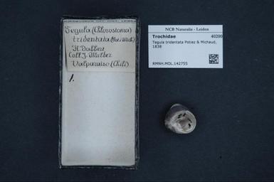 | Keywords: Naturalis Biodiversity Center - RMNH.MOL.142755 - Tegula tridentata (Potiez & Michaud, 1838) - Turbinidae - Mollusc shell.jpeg artwork Dimensions artwork Document type Turbinidae Tegula Individual count Infraspecific epithet Infraspecific rank Institution Naturalis Kind of unit artwork Kind of unit specimen shell Life stage Medium artwork Nomenclatural code Source institute Leiden Scale the width of the text on the species/QR-code label is 38 mm Occurrence ID page Other fields Other versions artwork Permission license Naturalis donation CC-0 Mollusca Publication location Scientific name Tegula tridentata Potiez Michaud 1838 Scientific name authorship Potiez Michaud 1838 Source url http //bioportal naturalis nl Specific epithet tridentata State or province Subject keywords artwork Subject keywords publication Title artwork Title publication Type status Uploaded with GWToolset Naturalis_Biodiversity_Center_-_RMNH MOL 142755_-_Tegula_tridentata_ Potiez_ _Michaud _1838 _-_Turbinidae_-_Mollusc_shell http //medialib naturalis nl/file/id/RMNH MOL 142755/format/large Molluscs at Naturalis from the Rijksmuseum van Natuurlijke Historie Media donated by Naturalis Biodiversity Center Tegula Tegula tridentata |