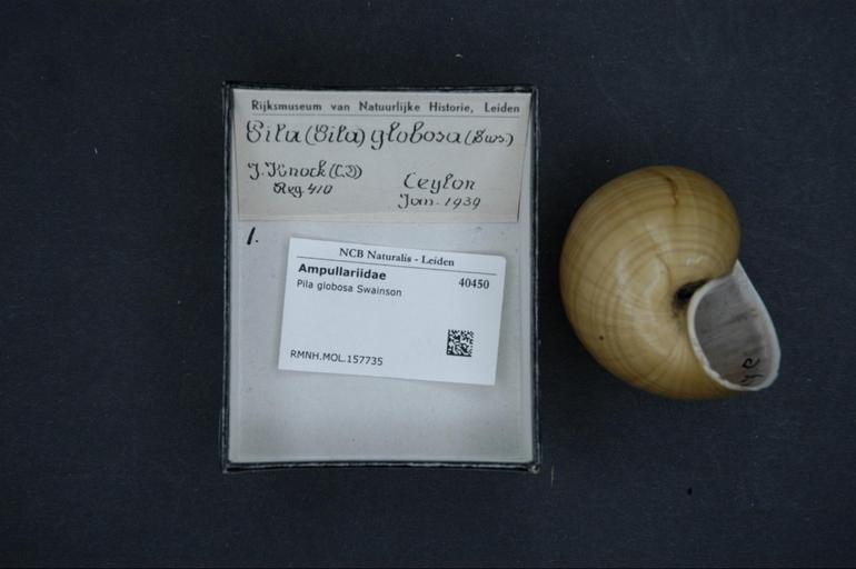 | Keywords: Naturalis Biodiversity Center - RMNH.MOL.157735 - Pila globosa Swainson - Ampullariidae - Mollusc shell.jpeg artwork Dimensions artwork Document type Ampullariidae Pila Individual count Infraspecific epithet Infraspecific rank Institution Naturalis Kind of unit artwork Kind of unit specimen shell Life stage Medium artwork Nomenclatural code Scale the width of the text on the species/QR-code label is 38 mm Occurrence ID page Other fields Other versions artwork Permission license Naturalis donation CC-0 Mollusca Publication location Scientific name Pila globosa Swainson Scientific name authorship Swainson Source url http //bioportal naturalis nl Specific epithet globosa State or province Subject keywords artwork Subject keywords publication Title artwork Title publication Type status Uploaded with GWToolset Naturalis_Biodiversity_Center_-_RMNH MOL 157735_-_Pila_globosa_Swainson_-_Ampullariidae_-_Mollusc_shell http //medialib naturalis nl/file/id/RMNH MOL 157735/format/large Media donated by Naturalis Biodiversity Center Molluscs at Naturalis from the Rijksmuseum van Natuurlijke Historie Pila globosa Pila genus |