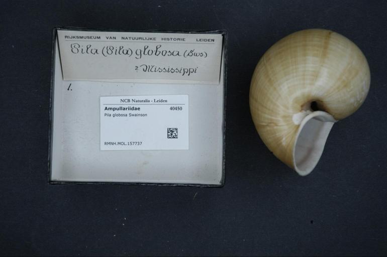 | Keywords: Naturalis Biodiversity Center - RMNH.MOL.157737 - Pila globosa Swainson - Ampullariidae - Mollusc shell.jpeg artwork Dimensions artwork Document type Ampullariidae Pila Individual count Infraspecific epithet Infraspecific rank Institution Naturalis Kind of unit artwork Kind of unit specimen shell Life stage Medium artwork Nomenclatural code Scale the width of the text on the species/QR-code label is 38 mm Occurrence ID page Other fields Other versions artwork Permission license Naturalis donation CC-0 Mollusca Publication location Scientific name Pila globosa Swainson Scientific name authorship Swainson Source url http //bioportal naturalis nl Specific epithet globosa State or province Subject keywords artwork Subject keywords publication Title artwork Title publication Type status Uploaded with GWToolset Naturalis_Biodiversity_Center_-_RMNH MOL 157737_-_Pila_globosa_Swainson_-_Ampullariidae_-_Mollusc_shell http //medialib naturalis nl/file/id/RMNH MOL 157737/format/large Media donated by Naturalis Biodiversity Center Molluscs at Naturalis from the Rijksmuseum van Natuurlijke Historie Pila globosa Pila genus |