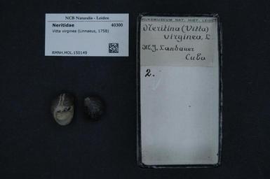 | Keywords: Naturalis Biodiversity Center - RMNH.MOL.150149 - Vitta virginea (Linnaeus, 1758) - Neritidae - Mollusc shell.jpeg artwork Dimensions artwork Document type Neritidae Vitta Individual count Infraspecific epithet Infraspecific rank Institution Naturalis Kind of unit artwork Kind of unit specimen shell Life stage Medium artwork Nomenclatural code Scale the width of the text on the species/QR-code label is 38 mm Occurrence ID page Other fields Other versions artwork Permission license Naturalis donation CC-0 Mollusca Publication location Scientific name Vitta virginea Linnaeus 1758 Scientific name authorship Linnaeus 1758 Source url http //bioportal naturalis nl Specific epithet virginea State or province Subject keywords artwork Subject keywords publication Title artwork Title publication Type status Uploaded with GWToolset Naturalis_Biodiversity_Center_-_RMNH MOL 150149_-_Vitta_virginea_ Linnaeus _1758 _-_Neritidae_-_Mollusc_shell http //medialib naturalis nl/file/id/RMNH MOL 150149/format/large Media donated by Naturalis Biodiversity Center Molluscs at Naturalis from the Rijksmuseum van Natuurlijke Historie Vitta virginea |