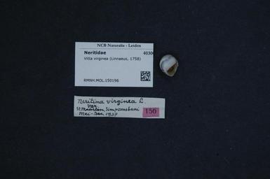 | Keywords: Naturalis Biodiversity Center - RMNH.MOL.150196 - Vitta virginea (Linnaeus, 1758) - Neritidae - Mollusc shell.jpeg artwork Dimensions artwork Document type Neritidae Vitta Individual count Infraspecific epithet Infraspecific rank Institution Naturalis Kind of unit artwork Kind of unit specimen shell Life stage Medium artwork Nomenclatural code Scale the width of the text on the species/QR-code label is 38 mm Occurrence ID page Other fields Other versions artwork Permission license Naturalis donation CC-0 Mollusca Publication location Scientific name Vitta virginea Linnaeus 1758 Scientific name authorship Linnaeus 1758 Source url http //bioportal naturalis nl Specific epithet virginea State or province Subject keywords artwork Subject keywords publication Title artwork Title publication Type status Uploaded with GWToolset Naturalis_Biodiversity_Center_-_RMNH MOL 150196_-_Vitta_virginea_ Linnaeus _1758 _-_Neritidae_-_Mollusc_shell http //medialib naturalis nl/file/id/RMNH MOL 150196/format/large Media donated by Naturalis Biodiversity Center Molluscs at Naturalis from the Rijksmuseum van Natuurlijke Historie Vitta virginea |