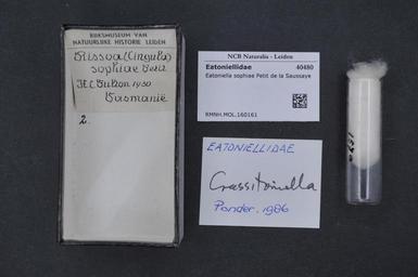 | Keywords: Naturalis Biodiversity Center - RMNH.MOL.160161 - Eatoniella sophiae Petit de la Saussaye - Eatoniellidae - Mollusc shell.jpeg artwork Dimensions artwork Document type Eatoniellidae Eatoniella Individual count Infraspecific epithet Infraspecific rank Institution Naturalis Kind of unit artwork Kind of unit specimen shell Life stage Medium artwork Nomenclatural code Scale the width of the text on the species/QR-code label is 38 mm Occurrence ID page Other fields Other versions artwork Permission license Naturalis donation CC-0 Mollusca Publication location Scientific name Eatoniella sophiae Petit de la Saussaye Scientific name authorship Petit de la Saussaye Source url http //bioportal naturalis nl Specific epithet sophiae State or province Subject keywords artwork Subject keywords publication Title artwork Title publication Type status Uploaded with GWToolset Naturalis_Biodiversity_Center_-_RMNH MOL 160161_-_Eatoniella_sophiae_Petit_de_la_Saussaye_-_Eatoniellidae_-_Mollusc_shell http //medialib naturalis nl/file/id/RMNH MOL 160161/format/large Media donated by Naturalis Biodiversity Center Molluscs at Naturalis from the Rijksmuseum van Natuurlijke Historie Eatoniella sophiae Eatoniella |