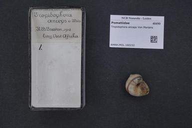 | Keywords: Naturalis Biodiversity Center - RMNH.MOL.160232 - Tropidophora anceps (Von Martens, 1878) - Pomatiidae - Mollusc shell.jpeg artwork Dimensions artwork Document type Pomatiidae Tropidophora Individual count Infraspecific epithet Infraspecific rank Institution Naturalis Kind of unit artwork Kind of unit specimen shell Life stage Medium artwork Nomenclatural code Scale the width of the text on the species/QR-code label is 38 mm Occurrence ID page Other fields Other versions artwork Permission license Naturalis donation CC-0 Mollusca Publication location Scientific name Tropidophora anceps Von Martens 1878 Scientific name authorship Von Martens Source url http //bioportal naturalis nl Specific epithet anceps State or province Subject keywords artwork Subject keywords publication Title artwork Title publication Type status Uploaded with GWToolset Naturalis_Biodiversity_Center_-_RMNH MOL 160232_-_Tropidophora_anceps_ Von_Martens _1878 _-_Pomatiidae_-_Mollusc_shell http //medialib naturalis nl/file/id/RMNH MOL 160232/format/large Media donated by Naturalis Biodiversity Center Molluscs at Naturalis from the Rijksmuseum van Natuurlijke Historie Tropidophora anceps Tropidophora |