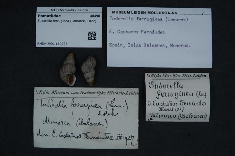 Keywords: Naturalis Biodiversity Center - RMNH.MOL.160983 - Tudorella ferruginea (Lamarck, 1822) - Pomatiidae - Mollusc shell.jpeg artwork Dimensions artwork Document type Pomatiidae subfamily Pomatiasinae Tudorella Individual count Infraspecific epithet Infraspecific rank Institution Naturalis Kind of unit artwork Kind of unit specimen shell Life stage Medium artwork Nomenclatural code Scale the width of the text on the species/QR-code label is 38 mm Occurrence ID page Other fields Other versions artwork Permission license Naturalis donation CC-0 Mollusca Publication location Scientific name Tudorella ferruginea Lamarck 1822 Scientific name authorship Lamarck 1822 Source url http //bioportal naturalis nl Specific epithet ferruginea State or province Subject keywords artwork Subject keywords publication Title artwork Title publication Type status Uploaded with GWToolset Naturalis_Biodiversity_Center_-_RMNH MOL 160983_-_Tudorella_ferruginea_ Lamarck _1822 _-_Pomatiidae_-_Mollusc_shell http //medialib naturalis nl/file/id/RMNH MOL 160983/format/large Media donated by Naturalis Biodiversity Center Molluscs at Naturalis from the Rijksmuseum van Natuurlijke Historie Tudorella ferruginea Tudorella |