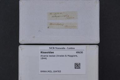 | Keywords: Naturalis Biodiversity Center - RMNH.MOL.164783 1 - Alvania testae (Aradas & Maggiore, 1844) - Rissoidae - Mollusc shell.jpeg artwork Dimensions artwork Document type Rissoidae subfamily Rissoinae Alvania Individual count Infraspecific epithet Infraspecific rank Institution Naturalis Kind of unit artwork Kind of unit specimen shell Life stage Medium artwork Nomenclatural code Scale the width of the text on the species/QR-code label is 38 mm Occurrence ID page Other fields Other versions artwork Permission license Naturalis donation CC-0 Mollusca Publication location Scientific name Alvania testae Aradas Maggiore 1844 Scientific name authorship Aradas Maggiore 1844 Source url http //bioportal naturalis nl Specific epithet testae State or province Subject keywords artwork Subject keywords publication Title artwork Title publication Type status Uploaded with GWToolset Naturalis_Biodiversity_Center_-_RMNH MOL 164783_1_-_Alvania_testae_ Aradas_ _Maggiore _1844 _-_Rissoidae_-_Mollusc_shell http //medialib naturalis nl/file/id/RMNH MOL 164783_1/format/large Media donated by Naturalis Biodiversity Center Molluscs at Naturalis from the Rijksmuseum van Natuurlijke Historie Alvania testae |