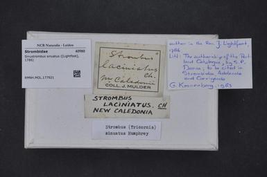 | Keywords: Naturalis Biodiversity Center - RMNH.MOL.177921 1 - Sinustrombus sinuatus (-Lightfoot-, 1786) - Strombidae - Mollusc shell.jpeg artwork Dimensions artwork Document type Strombidae Sinustrombus Individual count Infraspecific epithet Infraspecific rank Institution Naturalis Kind of unit artwork Kind of unit specimen shell Life stage Medium artwork Nomenclatural code Source institute Rijksmuseum van Natuurlijke Historie Leiden Scale the width of the text on the species/QR-code label is 38 mm Occurrence ID page Other fields Other versions artwork Permission license Naturalis donation CC-0 Mollusca Publication location Scientific name Sinustrombus sinuatus Lightfoot 1786 Scientific name authorship Lightfoot 1786 Source url http //bioportal naturalis nl Specific epithet sinuatus State or province Subject keywords artwork Subject keywords publication Title artwork Title publication Type status Uploaded with GWToolset Naturalis_Biodiversity_Center_-_RMNH MOL 177921_1_-_Sinustrombus_sinuatus_ Lightfoot _1786 _-_Strombidae_-_Mollusc_shell http //medialib naturalis nl/file/id/RMNH MOL 177921_1/format/large Media donated by Naturalis Biodiversity Center Molluscs at Naturalis from the Rijksmuseum van Natuurlijke Historie Sinustrombus sinuatus Sinustrombus |