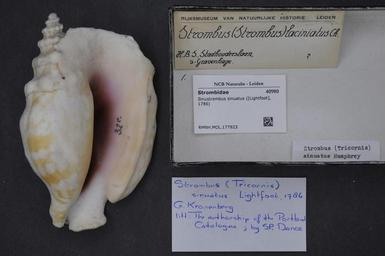 | Keywords: Naturalis Biodiversity Center - RMNH.MOL.177923 - Sinustrombus sinuatus (-Lightfoot-, 1786) - Strombidae - Mollusc shell.jpeg artwork Dimensions artwork Document type Strombidae Sinustrombus Individual count Infraspecific epithet Infraspecific rank Institution Naturalis Kind of unit artwork Kind of unit specimen shell Life stage Medium artwork Nomenclatural code Source institute Rijksmuseum van Natuurlijke Historie Leiden Scale the width of the text on the species/QR-code label is 38 mm Occurrence ID page Other fields Other versions artwork Permission license Naturalis donation CC-0 Mollusca Publication location Scientific name Sinustrombus sinuatus Lightfoot 1786 Scientific name authorship Lightfoot 1786 Source url http //bioportal naturalis nl Specific epithet sinuatus State or province Subject keywords artwork Subject keywords publication Title artwork Title publication Type status Uploaded with GWToolset Naturalis_Biodiversity_Center_-_RMNH MOL 177923_-_Sinustrombus_sinuatus_ Lightfoot _1786 _-_Strombidae_-_Mollusc_shell http //medialib naturalis nl/file/id/RMNH MOL 177923/format/large Media donated by Naturalis Biodiversity Center Molluscs at Naturalis from the Rijksmuseum van Natuurlijke Historie Sinustrombus sinuatus Sinustrombus |
