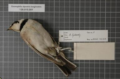 | Keywords: Naturalis Biodiversity Center - RMNH.AVES.122305 2 - Eremophila alpestris longirostris (Moore, 1856) - Alaudidae - bird skin specimen.jpeg artwork Dimensions artwork Document type Alaudidae Eremophila Individual count 1 Infraspecific epithet longirostris Infraspecific rank Institution Naturalis Kind of unit artwork Kind of unit specimen skin Life stage Transbaikalia Onon Medium artwork Nomenclatural code Sex remark female Occurrence ID page Other fields Other versions artwork Permission license Naturalis donation CC-0 Publication location Scientific name Eremophila alpestris longirostris Moore 1856 Scientific name authorship Moore 1856 female Source url http //bioportal naturalis nl Specific epithet alpestris State or province Subject keywords artwork Subject keywords publication Title artwork Title publication Type status Uploaded with GWToolset Naturalis_Biodiversity_Center_-_RMNH AVES 122305_2_-_Eremophila_alpestris_longirostris_ Moore _1856 _-_Alaudidae_-_bird_skin_specimen http //medialib naturalis nl/file/id/RMNH AVES 122305_2/format/large Media donated by Naturalis Biodiversity Center Songbird specimens at Naturalis Biodiversity Center Eremophila alpestris |