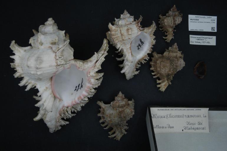 Keywords: Naturalis Biodiversity Center - RMNH.MOL.129080 - Chicoreus ramosus (Linnaeus, 1758) - Muricidae - Mollusc shell.jpeg artwork Dimensions artwork Document type Muricidae subfamily Muricinae Chicoreus Individual count Infraspecific epithet Infraspecific rank Institution Naturalis Kind of unit artwork Kind of unit specimen shell Life stage Medium artwork Nomenclatural code Source institute Leiden Scale the width of the text on the species/QR-code label is 38 mm Occurrence ID page Neogastropoda Other fields Other versions artwork Permission license Naturalis donation CC-0 Mollusca Publication location Scientific name Chicoreus ramosus Linnaeus 1758 Scientific name authorship Linnaeus 1758 Source url http //bioportal naturalis nl Specific epithet ramosus State or province Subject keywords artwork Subject keywords publication Title artwork Title publication Type status Uploaded with GWToolset Naturalis_Biodiversity_Center_-_RMNH MOL 129080_-_Chicoreus_ramosus_ Linnaeus _1758 _-_Muricidae_-_Mollusc_shell http //medialib naturalis nl/file/id/RMNH MOL 129080/format/large Molluscs at Naturalis from the Rijksmuseum van Natuurlijke Historie Media donated by Naturalis Biodiversity Center Chicoreus ramosus |