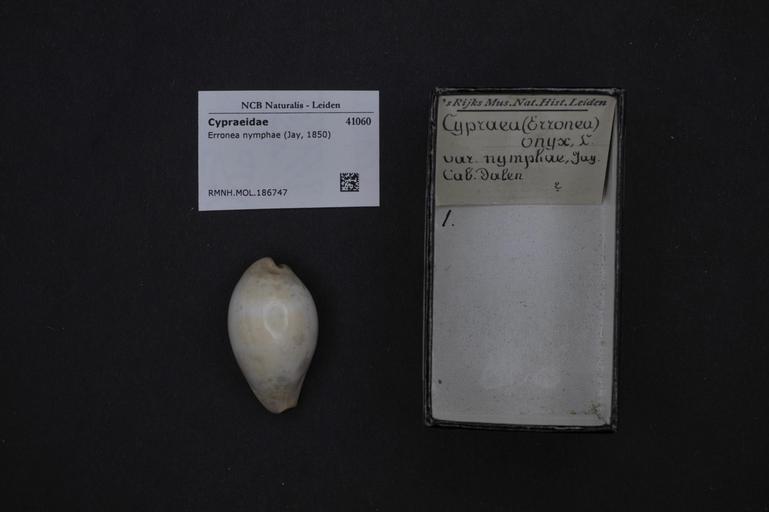 | Keywords: Naturalis Biodiversity Center - RMNH.MOL.186747 - Erronea nymphae (Jay, 1850) - Cypraeidae - Mollusc shell.jpeg artwork Dimensions artwork Document type Cypraeidae subfamily Cypraeovulinae Erronea Individual count Infraspecific epithet Infraspecific rank Institution Naturalis Kind of unit artwork Kind of unit specimen shell Life stage Medium artwork Nomenclatural code Source institute Rijksmuseum van Natuurlijke Historie Leiden Scale the width of the text on the species/QR-code label is 38 mm Occurrence ID page Other fields Other versions artwork Permission license Naturalis donation CC-0 Mollusca Publication location Scientific name Erronea nymphae Jay 1850 Scientific name authorship Jay 1850 Source url http //bioportal naturalis nl Specific epithet nymphae State or province Subject keywords artwork Subject keywords publication Title artwork Title publication Type status Uploaded with GWToolset Naturalis_Biodiversity_Center_-_RMNH MOL 186747_-_Erronea_nymphae_ Jay _1850 _-_Cypraeidae_-_Mollusc_shell http //medialib naturalis nl/file/id/RMNH MOL 186747/format/large Media donated by Naturalis Biodiversity Center Molluscs at Naturalis from the Rijksmuseum van Natuurlijke Historie Erronea nymphae Erronea |