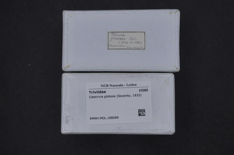 | Keywords: Naturalis Biodiversity Center - RMNH.MOL.188089 1 - Cleotrivia globosa (Sowerby, 1832) - Triviidae - Mollusc shell.jpeg artwork Dimensions artwork Document type Triviidae Cleotrivia Individual count Infraspecific epithet Infraspecific rank Institution Naturalis Kind of unit artwork Kind of unit specimen shell Life stage Medium artwork Nomenclatural code Source institute Rijksmuseum van Natuurlijke Historie Leiden Scale the width of the text on the species/QR-code label is 38 mm Occurrence ID page Other fields Other versions artwork Permission license Naturalis donation CC-0 Mollusca Publication location Scientific name Cleotrivia globosa Sowerby 1832 Scientific name authorship Sowerby 1832 Source url http //bioportal naturalis nl Specific epithet globosa State or province Subject keywords artwork Subject keywords publication Title artwork Title publication Type status Uploaded with GWToolset Naturalis_Biodiversity_Center_-_RMNH MOL 188089_1_-_Cleotrivia_globosa_ Sowerby _1832 _-_Triviidae_-_Mollusc_shell http //medialib naturalis nl/file/id/RMNH MOL 188089_1/format/large Media donated by Naturalis Biodiversity Center Molluscs at Naturalis from the Rijksmuseum van Natuurlijke Historie Cleotrivia globosa Cleotrivia |