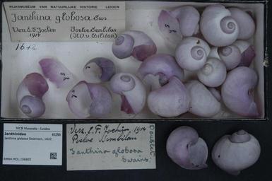 | Keywords: Naturalis Biodiversity Center - RMNH.MOL.196805 - Janthina globosa Swainson, 1822 - Janthinidae - Mollusc shell.jpeg artwork Dimensions artwork Document type Janthinidae Janthina Individual count Infraspecific epithet Infraspecific rank Institution Naturalis Kind of unit artwork Kind of unit specimen shell Life stage Medium artwork Nomenclatural code Source institute Rijksmuseum van Natuurlijke Historie Leiden Scale the width of the text on the species/QR-code label is 38 mm Occurrence ID page Other fields Other versions artwork Permission license Naturalis donation CC-0 Mollusca Publication location Scientific name Janthina globosa Swainson 1822 Scientific name authorship Swainson 1822 Source url http //bioportal naturalis nl Specific epithet globosa State or province Subject keywords artwork Subject keywords publication Title artwork Title publication Type status Uploaded with GWToolset Naturalis_Biodiversity_Center_-_RMNH MOL 196805_-_Janthina_globosa_Swainson _1822_-_Janthinidae_-_Mollusc_shell http //medialib naturalis nl/file/id/RMNH MOL 196805/format/large Media donated by Naturalis Biodiversity Center Molluscs at Naturalis from the Rijksmuseum van Natuurlijke Historie Janthina globosa |
