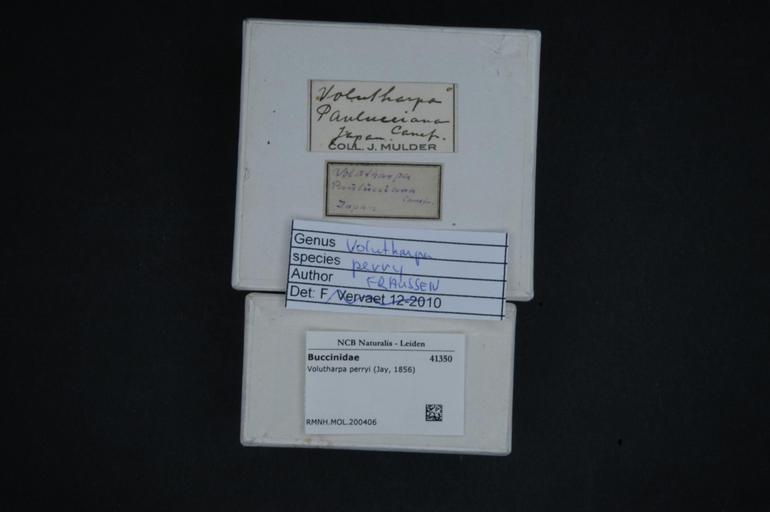 | Keywords: Naturalis Biodiversity Center - RMNH.MOL.200406 1 - Volutharpa perryi (Jay, 1856) - Buccinidae - Mollusc shell.jpeg artwork Dimensions artwork Document type Buccinidae subfamily Buccininae Volutharpa Individual count Infraspecific epithet Infraspecific rank Institution Naturalis Kind of unit artwork Kind of unit specimen shell Life stage Medium artwork Nomenclatural code Source institute Rijksmuseum van Natuurlijke Historie Leiden Scale the width of the text on the species/QR-code label is 38 mm Occurrence ID page Other fields Other versions artwork Permission license Naturalis donation CC-0 Mollusca Publication location Scientific name Volutharpa perryi Jay 1856 Scientific name authorship Jay 1856 Source url http //bioportal naturalis nl Specific epithet perryi State or province Subject keywords artwork Subject keywords publication Title artwork Title publication Type status Uploaded with GWToolset Naturalis_Biodiversity_Center_-_RMNH MOL 200406_1_-_Volutharpa_perryi_ Jay _1856 _-_Buccinidae_-_Mollusc_shell http //medialib naturalis nl/file/id/RMNH MOL 200406_1/format/large Media donated by Naturalis Biodiversity Center Molluscs at Naturalis from the Rijksmuseum van Natuurlijke Historie Volutharpa perryi Volutharpa |