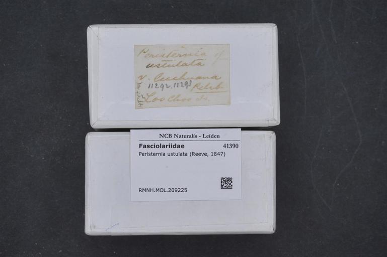 | Keywords: Naturalis Biodiversity Center - RMNH.MOL.209225 1 - Peristernia ustulata (Reeve, 1847) - Fasciolariidae - Mollusc shell.jpeg artwork Dimensions artwork Document type Fasciolariidae subfamily Peristerniinae Peristernia Individual count Infraspecific epithet Infraspecific rank Institution Naturalis Kind of unit artwork Kind of unit specimen shell Life stage Medium artwork Nomenclatural code Source institute Rijksmuseum van Natuurlijke Historie Leiden Scale the width of the text on the species/QR-code label is 38 mm Occurrence ID page Other fields Other versions artwork Permission license Naturalis donation CC-0 Mollusca Publication location Scientific name Peristernia ustulata Reeve 1847 Scientific name authorship Reeve 1847 Source url http //bioportal naturalis nl Specific epithet ustulata State or province Subject keywords artwork Subject keywords publication Title artwork Title publication Type status Uploaded with GWToolset Naturalis_Biodiversity_Center_-_RMNH MOL 209225_1_-_Peristernia_ustulata_ Reeve _1847 _-_Fasciolariidae_-_Mollusc_shell http //medialib naturalis nl/file/id/RMNH MOL 209225_1/format/large Media donated by Naturalis Biodiversity Center Molluscs at Naturalis from the Rijksmuseum van Natuurlijke Historie Peristernia ustulata Peristernia |