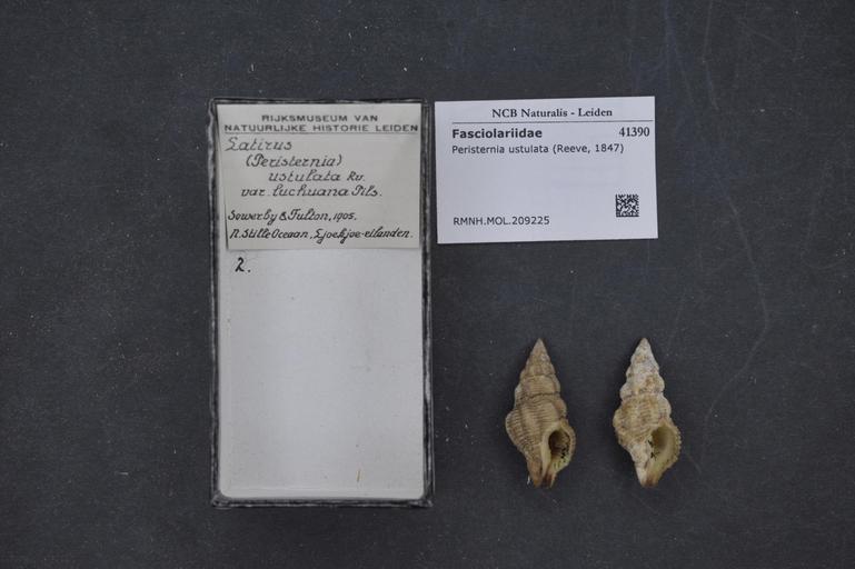 | Keywords: Naturalis Biodiversity Center - RMNH.MOL.209225 - Peristernia ustulata (Reeve, 1847) - Fasciolariidae - Mollusc shell.jpeg artwork Dimensions artwork Document type Fasciolariidae subfamily Peristerniinae Peristernia Individual count Infraspecific epithet Infraspecific rank Institution Naturalis Kind of unit artwork Kind of unit specimen shell Life stage Medium artwork Nomenclatural code Source institute Rijksmuseum van Natuurlijke Historie Leiden Scale the width of the text on the species/QR-code label is 38 mm Occurrence ID page Other fields Other versions artwork Permission license Naturalis donation CC-0 Mollusca Publication location Scientific name Peristernia ustulata Reeve 1847 Scientific name authorship Reeve 1847 Source url http //bioportal naturalis nl Specific epithet ustulata State or province Subject keywords artwork Subject keywords publication Title artwork Title publication Type status Uploaded with GWToolset Naturalis_Biodiversity_Center_-_RMNH MOL 209225_-_Peristernia_ustulata_ Reeve _1847 _-_Fasciolariidae_-_Mollusc_shell http //medialib naturalis nl/file/id/RMNH MOL 209225/format/large Media donated by Naturalis Biodiversity Center Molluscs at Naturalis from the Rijksmuseum van Natuurlijke Historie Peristernia ustulata Peristernia |