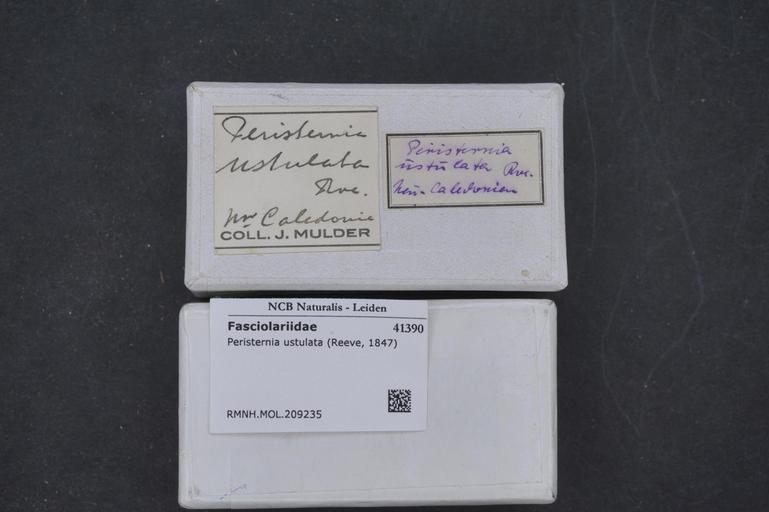 | Keywords: Naturalis Biodiversity Center - RMNH.MOL.209235 1 - Peristernia ustulata (Reeve, 1847) - Fasciolariidae - Mollusc shell.jpeg artwork Dimensions artwork Document type Fasciolariidae subfamily Peristerniinae Peristernia Individual count Infraspecific epithet Infraspecific rank Institution Naturalis Kind of unit artwork Kind of unit specimen shell Life stage Medium artwork Nomenclatural code Source institute Rijksmuseum van Natuurlijke Historie Leiden Scale the width of the text on the species/QR-code label is 38 mm Occurrence ID page Other fields Other versions artwork Permission license Naturalis donation CC-0 Mollusca Publication location Scientific name Peristernia ustulata Reeve 1847 Scientific name authorship Reeve 1847 Source url http //bioportal naturalis nl Specific epithet ustulata State or province Subject keywords artwork Subject keywords publication Title artwork Title publication Type status Uploaded with GWToolset Naturalis_Biodiversity_Center_-_RMNH MOL 209235_1_-_Peristernia_ustulata_ Reeve _1847 _-_Fasciolariidae_-_Mollusc_shell http //medialib naturalis nl/file/id/RMNH MOL 209235_1/format/large Media donated by Naturalis Biodiversity Center Molluscs at Naturalis from the Rijksmuseum van Natuurlijke Historie Peristernia ustulata Peristernia |