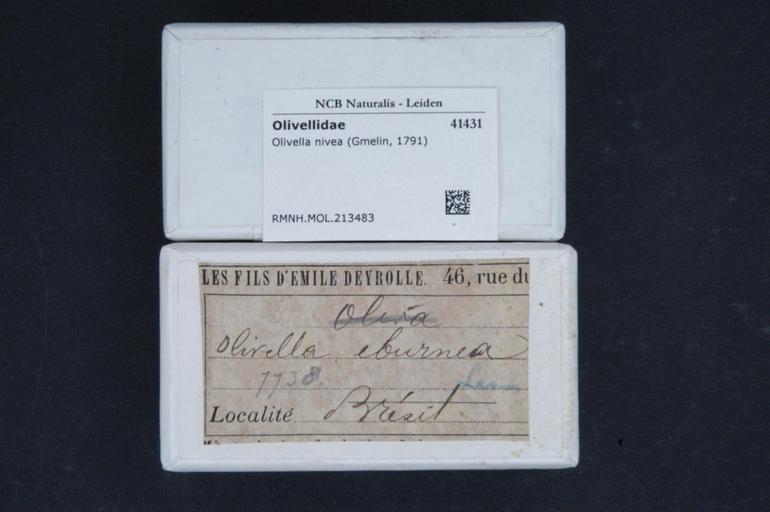 | Keywords: Naturalis Biodiversity Center - RMNH.MOL.213483 1 - Olivella nivea (Gmelin, 1791) - Olivellidae - Mollusc shell.jpeg artwork Dimensions artwork Document type Olivellidae Olivella Individual count Infraspecific epithet Infraspecific rank Institution Naturalis Kind of unit artwork Kind of unit specimen shell Life stage Medium artwork Nomenclatural code Source institute Rijksmuseum van Natuurlijke Historie Leiden Scale the width of the text on the species/QR-code label is 38 mm Occurrence ID page Other fields Other versions artwork Permission license Naturalis donation CC-0 Mollusca Publication location Scientific name Olivella nivea Gmelin 1791 Scientific name authorship Gmelin 1791 Source url http //bioportal naturalis nl Specific epithet nivea State or province Subject keywords artwork Subject keywords publication Title artwork Title publication Type status Uploaded with GWToolset Naturalis_Biodiversity_Center_-_RMNH MOL 213483_1_-_Olivella_nivea_ Gmelin _1791 _-_Olivellidae_-_Mollusc_shell http //medialib naturalis nl/file/id/RMNH MOL 213483_1/format/large Media donated by Naturalis Biodiversity Center Molluscs at Naturalis from the Rijksmuseum van Natuurlijke Historie Olivella nivea Olivella |