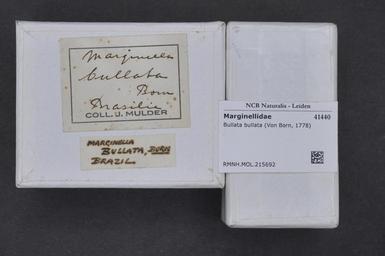 | Keywords: Naturalis Biodiversity Center - RMNH.MOL.215692 1 - Bullata bullata (Von Born, 1778) - Marginellidae - Mollusc shell.jpeg artwork Dimensions artwork Document type Marginellidae Bullata Individual count Infraspecific epithet Infraspecific rank Institution Naturalis Kind of unit artwork Kind of unit specimen shell Life stage Medium artwork Nomenclatural code Source institute Rijksmuseum van Natuurlijke Historie Leiden Scale the width of the text on the species/QR-code label is 38 mm Occurrence ID page Neogastropoda Other fields Other versions artwork Permission license Naturalis donation CC-0 Mollusca Publication location Scientific name Bullata bullata Von Born 1778 Scientific name authorship Von Born 1778 Source url http //bioportal naturalis nl Specific epithet bullata State or province Subject keywords artwork Subject keywords publication Title artwork Title publication Type status Uploaded with GWToolset Naturalis_Biodiversity_Center_-_RMNH MOL 215692_1_-_Bullata_bullata_ Von_Born _1778 _-_Marginellidae_-_Mollusc_shell http //medialib naturalis nl/file/id/RMNH MOL 215692_1/format/large Media donated by Naturalis Biodiversity Center Molluscs at Naturalis from the Rijksmuseum van Natuurlijke Historie Bullata bullata Bullata |