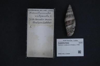 | Keywords: Naturalis Biodiversity Center - RMNH.MOL.216984 - Vexillum vulpecula (Linnaeus, 1758) - Costellariidae - Mollusc shell.jpeg artwork Dimensions artwork Document type Costellariidae Vexillum Individual count Infraspecific epithet Infraspecific rank Institution Naturalis Kind of unit artwork Kind of unit specimen shell Life stage Medium artwork Nomenclatural code Source institute Rijksmuseum van Natuurlijke Historie Leiden Scale the width of the text on the species/QR-code label is 38 mm Occurrence ID page Neogastropoda Other fields Other versions artwork Permission license Naturalis donation CC-0 Mollusca Publication location Scientific name Vexillum vulpecula Linnaeus 1758 Scientific name authorship Linnaeus 1758 Source url http //bioportal naturalis nl Specific epithet vulpecula State or province Subject keywords artwork Subject keywords publication Title artwork Title publication Type status Uploaded with GWToolset Naturalis_Biodiversity_Center_-_RMNH MOL 216984_-_Vexillum_vulpecula_ Linnaeus _1758 _-_Costellariidae_-_Mollusc_shell http //medialib naturalis nl/file/id/RMNH MOL 216984/format/large Molluscs at Naturalis from the Rijksmuseum van Natuurlijke Historie Media donated by Naturalis Biodiversity Center Vexillum vulpecula Vexillum |