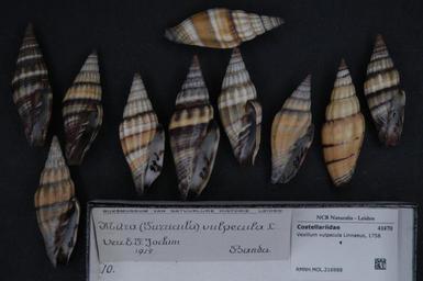 | Keywords: Naturalis Biodiversity Center - RMNH.MOL.216988 - Vexillum vulpecula (Linnaeus, 1758) - Costellariidae - Mollusc shell.jpeg artwork Dimensions artwork Document type Costellariidae Vexillum Individual count Infraspecific epithet Infraspecific rank Institution Naturalis Kind of unit artwork Kind of unit specimen shell Life stage Medium artwork Nomenclatural code Source institute Rijksmuseum van Natuurlijke Historie Leiden Scale the width of the text on the species/QR-code label is 38 mm Occurrence ID page Neogastropoda Other fields Other versions artwork Permission license Naturalis donation CC-0 Mollusca Publication location Scientific name Vexillum vulpecula Linnaeus 1758 Scientific name authorship Linnaeus 1758 Source url http //bioportal naturalis nl Specific epithet vulpecula State or province Subject keywords artwork Subject keywords publication Title artwork Title publication Type status Uploaded with GWToolset Naturalis_Biodiversity_Center_-_RMNH MOL 216988_-_Vexillum_vulpecula_ Linnaeus _1758 _-_Costellariidae_-_Mollusc_shell http //medialib naturalis nl/file/id/RMNH MOL 216988/format/large Molluscs at Naturalis from the Rijksmuseum van Natuurlijke Historie Media donated by Naturalis Biodiversity Center Vexillum vulpecula Vexillum |