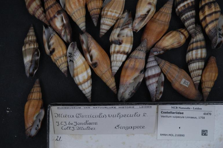 | Keywords: Naturalis Biodiversity Center - RMNH.MOL.216990 - Vexillum vulpecula (Linnaeus, 1758) - Costellariidae - Mollusc shell.jpeg artwork Dimensions artwork Document type Costellariidae Vexillum Individual count Infraspecific epithet Infraspecific rank Institution Naturalis Kind of unit artwork Kind of unit specimen shell Life stage Medium artwork Nomenclatural code Source institute Rijksmuseum van Natuurlijke Historie Leiden Scale the width of the text on the species/QR-code label is 38 mm Occurrence ID page Neogastropoda Other fields Other versions artwork Permission license Naturalis donation CC-0 Mollusca Publication location Scientific name Vexillum vulpecula Linnaeus 1758 Scientific name authorship Linnaeus 1758 Source url http //bioportal naturalis nl Specific epithet vulpecula State or province Subject keywords artwork Subject keywords publication Title artwork Title publication Type status Uploaded with GWToolset Naturalis_Biodiversity_Center_-_RMNH MOL 216990_-_Vexillum_vulpecula_ Linnaeus _1758 _-_Costellariidae_-_Mollusc_shell http //medialib naturalis nl/file/id/RMNH MOL 216990/format/large Molluscs at Naturalis from the Rijksmuseum van Natuurlijke Historie Media donated by Naturalis Biodiversity Center Vexillum vulpecula Vexillum |