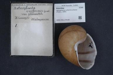 | Keywords: Naturalis Biodiversity Center - RMNH.MOL.274165 - Helicophanta oviformis phenax (Pilsbry, 1890) - Acavidae - Mollusc shell.jpeg artwork Dimensions artwork Document type Acavidae subfamily Acavinae Helicophanta Individual count Infraspecific epithet phenax Infraspecific rank Institution Naturalis Kind of unit artwork Kind of unit specimen shell Life stage Medium artwork Nomenclatural code Source institute Rijksmuseum van Natuurlijke Historie Leiden Scale the width of the text on the species/QR-code label is 38 mm Occurrence ID page Other fields Other versions artwork Permission license Naturalis donation CC-0 Mollusca Publication location Scientific name Helicophanta oviformis phenax Pilsbry 1890 Scientific name authorship Pilsbry 1890 Source url http //bioportal naturalis nl Specific epithet oviformis State or province Subject keywords artwork Subject keywords publication Title artwork Title publication Type status Uploaded with GWToolset Naturalis_Biodiversity_Center_-_RMNH MOL 274165_-_Helicophanta_oviformis_phenax_ Pilsbry _1890 _-_Acavidae_-_Mollusc_shell http //medialib naturalis nl/file/id/RMNH MOL 274165/format/large Molluscs at Naturalis from the Rijksmuseum van Natuurlijke Historie Media donated by Naturalis Biodiversity Center Helicophanta oviformis Helicophanta |