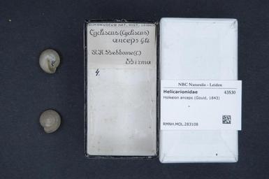 | Keywords: Naturalis Biodiversity Center - RMNH.MOL.283108 - Holkeion anceps (Gould, 1843) - Helicarionidae - Mollusc shell.jpeg artwork Dimensions artwork Document type Helicarionidae subfamily Macrochlamydinae Holkeion Individual count Infraspecific epithet Infraspecific rank Institution Naturalis Kind of unit artwork Kind of unit specimen shell Life stage Medium artwork Nomenclatural code Source institute Rijksmuseum van Natuurlijke Historie Leiden Scale the width of the text on the species/QR-code label is 38 mm Occurrence ID page Other fields Other versions artwork Permission license Naturalis donation CC-0 Mollusca Publication location Scientific name Holkeion anceps Gould 1843 Scientific name authorship Gould 1843 Source url http //bioportal naturalis nl Specific epithet anceps State or province Subject keywords artwork Subject keywords publication Title artwork Title publication Type status Uploaded with GWToolset Naturalis_Biodiversity_Center_-_RMNH MOL 283108_-_Holkeion_anceps_ Gould _1843 _-_Helicarionidae_-_Mollusc_shell http //medialib naturalis nl/file/id/RMNH MOL 283108/format/large Molluscs at Naturalis from the Rijksmuseum van Natuurlijke Historie Media donated by Naturalis Biodiversity Center Holkeion anceps Holkeion |