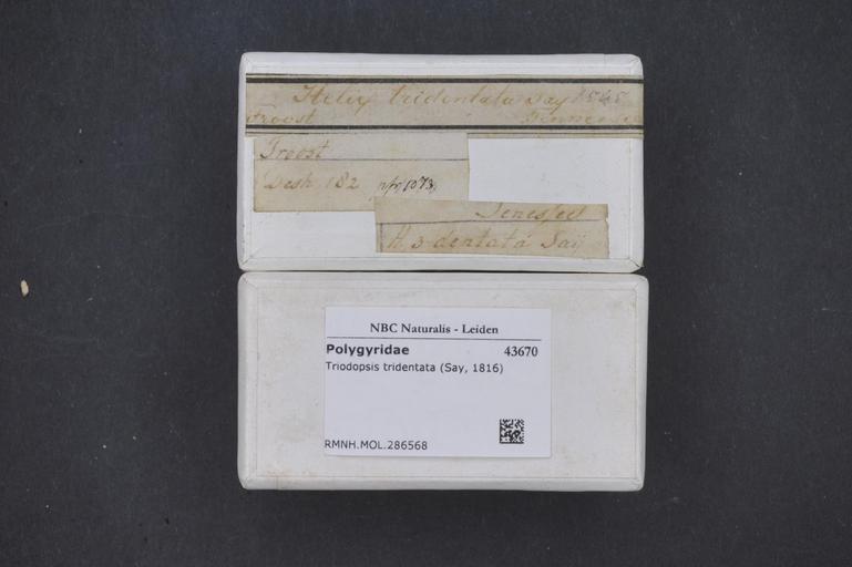 | Keywords: Naturalis Biodiversity Center - RMNH.MOL.286568 1 - Triodopsis tridentata (Say, 1816) - Polygyridae - Mollusc shell.jpeg artwork Dimensions artwork Document type Polygyridae subfamily Triodopsinae Triodopsis Individual count Infraspecific epithet Infraspecific rank Institution Naturalis Kind of unit artwork Kind of unit specimen shell Life stage Medium artwork Nomenclatural code Source institute Rijksmuseum van Natuurlijke Historie Leiden Scale the width of the text on the species/QR-code label is 38 mm Occurrence ID page Other fields Other versions artwork Permission license Naturalis donation CC-0 Mollusca Publication location Scientific name Triodopsis tridentata Say 1816 Scientific name authorship Say 1816 Source url http //bioportal naturalis nl Specific epithet tridentata State or province Subject keywords artwork Subject keywords publication Title artwork Title publication Type status Uploaded with GWToolset Naturalis_Biodiversity_Center_-_RMNH MOL 286568_1_-_Triodopsis_tridentata_ Say _1816 _-_Polygyridae_-_Mollusc_shell http //medialib naturalis nl/file/id/RMNH MOL 286568_1/format/large Molluscs at Naturalis from the Rijksmuseum van Natuurlijke Historie Media donated by Naturalis Biodiversity Center Triodopsis tridentata Triodopsis |
