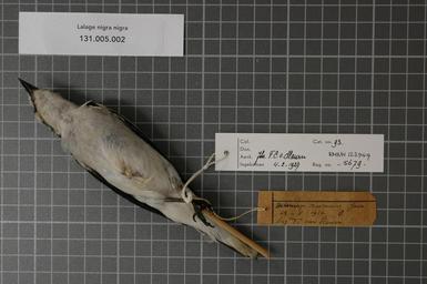 | Keywords: Naturalis Biodiversity Center - RMNH.AVES.123949 2 - Lalage nigra nigra (Forster, 1781) - Campephagidae - bird skin specimen.jpeg artwork Dimensions artwork Document type Campephagidae Lalage Individual count 1 Infraspecific epithet nigra Infraspecific rank Institution Naturalis Kind of unit artwork Kind of unit specimen skin Life stage Indonesia Java Dramaga Buitenzorg Medium artwork Nomenclatural code Occurrence ID page Other fields Other versions artwork Permission license Naturalis donation CC-0 Publication location Scientific name Lalage nigra nigra Forster 1781 Scientific name authorship Forster 1781 male Source url http //bioportal naturalis nl Specific epithet nigra State or province Subject keywords artwork Subject keywords publication Title artwork Title publication Type status Uploaded with GWToolset Naturalis_Biodiversity_Center_-_RMNH AVES 123949_2_-_Lalage_nigra_nigra_ Forster _1781 _-_Campephagidae_-_bird_skin_specimen http //medialib naturalis nl/file/id/RMNH AVES 123949_2/format/large Media donated by Naturalis Biodiversity Center Songbird specimens at Naturalis Biodiversity Center Lalage nigra nigra |