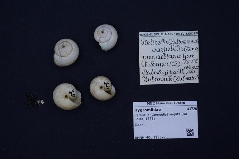 | Keywords: Naturalis Biodiversity Center - RMNH.MOL.298379 - Cernuella (Cernuella) virgata (Da Costa, 1778) - Hygromiidae - Mollusc shell.jpeg artwork Dimensions artwork Document type Hygromiidae subfamily Hygromiinae Cernuella Individual count Infraspecific epithet Infraspecific rank Institution Naturalis Kind of unit artwork Kind of unit specimen shell Life stage U s s r Medium artwork Nomenclatural code Source institute Rijksmuseum van Natuurlijke Historie Leiden Scale the width of the text on the species/QR-code label is 38 mm Occurrence ID page Other fields Other versions artwork Permission license Naturalis donation CC-0 Mollusca Publication location Scientific name Cernuella Cernuella virgata Da Costa 1778 Scientific name authorship Da Costa 1778 Source url http //bioportal naturalis nl Specific epithet virgata State or province Subject keywords artwork Subject keywords publication Title artwork Title publication Type status Uploaded with GWToolset Naturalis_Biodiversity_Center_-_RMNH MOL 298379_-_Cernuella_ Cernuella _virgata_ Da_Costa _1778 _-_Hygromiidae_-_Mollusc_shell http //medialib naturalis nl/file/id/RMNH MOL 298379/format/large Media donated by Naturalis Biodiversity Center Molluscs at Naturalis from the Rijksmuseum van Natuurlijke Historie Cernuella virgata Cernuella |