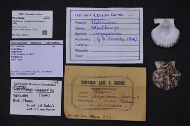 | Keywords: Naturalis Biodiversity Center - ZMA.MOLL.12670 - Volachlamys singaporina (Sowerby, 1842) - Pectinidae - Mollusc shell.jpeg artwork Dimensions artwork Document type Pectinidae subfamily Chlamydinae Volachlamys Dijkstra H H Individual count Infraspecific epithet Infraspecific rank Institution Naturalis Kind of unit artwork Kind of unit specimen shell Life stage Vietnam Binh-Thuan Medium artwork Nomenclatural code Collection remarks Moll Scale the width of the text on the species/QR-code label is 38 mm Occurrence ID page Pectinoida Other fields Other versions artwork Permission license Naturalis donation CC-0 Mollusca Publication location Scientific name Volachlamys singaporina Sowerby 1842 Scientific name authorship Sowerby 1842 Source url http //bioportal naturalis nl Specific epithet singaporina State or province Subject keywords artwork Subject keywords publication Title artwork Title publication Type status Uploaded with GWToolset Naturalis_Biodiversity_Center_-_ZMA MOLL 12670_-_Volachlamys_singaporina_ Sowerby _1842 _-_Pectinidae_-_Mollusc_shell http //medialib naturalis nl/file/id/ZMA MOLL 12670/format/large Media donated by Naturalis Biodiversity Center Molluscs at Naturalis from the Zoölogisch Museum Amsterdam Volachlamys singaporina |