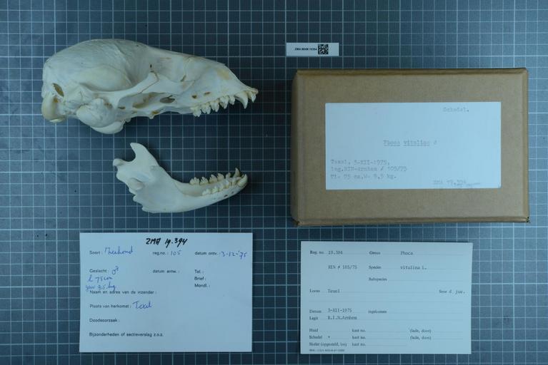 | Keywords: Naturalis Biodiversity Center - ZMA.MAM.19394 lat - Phoca vitulina Linnaeus, 1758 - skull.jpeg artwork Dimensions artwork Document type Phoca Individual count 1 Infraspecific epithet Infraspecific rank Institution Naturalis Kind of unit artwork Kind of unit specimen skull Life stage Juvenile Netherlands NH Texel Medium artwork Nomenclatural code Occurrence ID page Other fields Other versions artwork Permission license Naturalis donation CC-0 Publication location Scientific name Phoca vitulina Linnaeus 1758 Scientific name authorship Linnaeus 1758 male Source url http //bioportal naturalis nl Specific epithet vitulina State or province NH Subject keywords artwork Subject keywords publication Title artwork Title publication Type status Uploaded with GWToolset Naturalis_Biodiversity_Center_-_ZMA MAM 19394_lat_-_Phoca_vitulina_Linnaeus _1758_-_skull http //medialib naturalis nl/file/id/ZMA MAM 19394_lat/format/large Mammals at Naturalis from the Zoölogisch Museum Amsterdam Media donated by Naturalis Biodiversity Center Phoca vitulina Phoca |