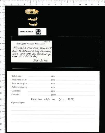 | Keywords: Naturalis Biodiversity Center - ZMA.MAM.20505.a pal - Rhinolophus rouxii rouxii - skull.jpeg artwork Dimensions artwork Document type Rhinolophus Individual count 1 Infraspecific epithet rouxii Infraspecific rank Institution Naturalis Kind of unit artwork Kind of unit specimen skull Life stage Potoli North Kanari district Karnataka India Medium artwork Nomenclatural code Occurrence ID page Other fields Other versions artwork Permission license Naturalis donation CC-0 Publication location Scientific name Rhinolophus rouxii rouxii Scientific name authorship male Source url http //bioportal naturalis nl Specific epithet rouxii State or province Subject keywords artwork Subject keywords publication Title artwork Title publication Type status Uploaded with GWToolset Naturalis_Biodiversity_Center_-_ZMA MAM 20505 a_pal_-_Rhinolophus_rouxii_rouxii_-_skull http //medialib naturalis nl/file/id/ZMA MAM 20505 a_pal/format/large Mammals at Naturalis from the Zoölogisch Museum Amsterdam Media donated by Naturalis Biodiversity Center Rhinolophus rouxii Rhinolophus |