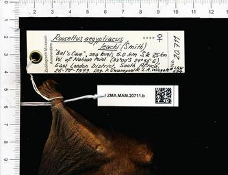 | Keywords: Naturalis Biodiversity Center - ZMA.MAM.20711.b gen - Rousettus aegyptiacus leachii - skin.jpeg artwork Dimensions artwork Document type Rousettus Individual count 1 Infraspecific epithet leachii Infraspecific rank Institution Naturalis Kind of unit artwork Kind of unit specimen skin Life stage Bat's Cave sea level; 5 0 km S 7 5 km W of Nahoon Point 33º00'S 27º56'E East London District South Africa Medium artwork Nomenclatural code Occurrence ID page Other fields Other versions artwork Permission license Naturalis donation CC-0 Publication location Scientific name Rousettus aegyptiacus leachii Scientific name authorship female Source url http //bioportal naturalis nl Specific epithet aegyptiacus State or province Subject keywords artwork Subject keywords publication Title artwork Title publication Type status Uploaded with GWToolset Naturalis_Biodiversity_Center_-_ZMA MAM 20711 b_gen_-_Rousettus_aegyptiacus_leachii_-_skin http //medialib naturalis nl/file/id/ZMA MAM 20711 b_gen/format/large Mammals at Naturalis from the Zoölogisch Museum Amsterdam Media donated by Naturalis Biodiversity Center Rousettus aegyptiacus Rousettus |