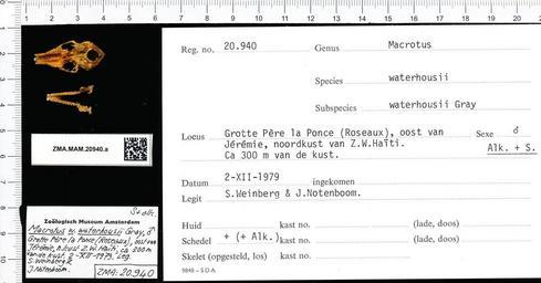 | Keywords: Naturalis Biodiversity Center - ZMA.MAM.20940.a pal - Macrotus waterhousii - skull.jpeg artwork Dimensions artwork Document type Macrotus Individual count 1 Infraspecific epithet Infraspecific rank Institution Naturalis Kind of unit artwork Kind of unit specimen skull Life stage Grotte Père la Ponce Roseaux O van Jérémie N kust van Z W Haïti; ca 300 m van de kust Medium artwork Nomenclatural code Occurrence ID page Other fields Other versions artwork Permission license Naturalis donation CC-0 Publication location Scientific name Macrotus waterhousii Scientific name authorship male Source url http //bioportal naturalis nl Specific epithet waterhousii State or province Subject keywords artwork Subject keywords publication Title artwork Title publication Type status Uploaded with GWToolset Naturalis_Biodiversity_Center_-_ZMA MAM 20940 a_pal_-_Macrotus_waterhousii_-_skull http //medialib naturalis nl/file/id/ZMA MAM 20940 a_pal/format/large Mammals at Naturalis from the Zoölogisch Museum Amsterdam Media donated by Naturalis Biodiversity Center Macrotus waterhousii Macrotus |