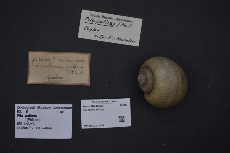 | Keywords: Naturalis Biodiversity Center - ZMA.MOLL.318192 - Pila pallens Philippi - Ampullariidae - Mollusc shell.jpeg artwork Dimensions artwork Document type Ampullariidae Pila Individual count Infraspecific epithet Infraspecific rank Institution Naturalis Kind of unit artwork Kind of unit specimen shell Life stage Medium artwork Nomenclatural code Source institute Zoölogisch Museum Amsterdam Scale the width of the text on the species/QR-code label is 38 mm Occurrence ID page Other fields Other versions artwork Permission license Naturalis donation CC-0 Mollusca Publication location Scientific name Pila pallens Philippi Scientific name authorship Philippi Source url http //bioportal naturalis nl Specific epithet pallens State or province Subject keywords artwork Subject keywords publication Title artwork Title publication Type status Uploaded with GWToolset Naturalis_Biodiversity_Center_-_ZMA MOLL 318192_-_Pila_pallens_Philippi_-_Ampullariidae_-_Mollusc_shell http //medialib naturalis nl/file/id/ZMA MOLL 318192/format/large Media donated by Naturalis Biodiversity Center Molluscs at Naturalis from the Zoölogisch Museum Amsterdam Pila pallens Pila |
