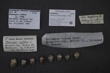 | Keywords: Naturalis Biodiversity Center - ZMA.MOLL.34142 - Melampus coffea (Linnaeus, 1758) - Ellobiidae - Mollusc shell.jpeg artwork Dimensions artwork Document type Ellobiidae subfamily Melampodinae Melampus Individual count Infraspecific epithet Infraspecific rank Institution Naturalis Kind of unit artwork Kind of unit specimen shell Life stage Bahamas Mangrove Cay Andros Is Medium artwork Nomenclatural code Source institute Zoölogisch Museum Amsterdam Scale the width of the text on the species/QR-code label is 38 mm Occurrence ID page Other fields Other versions artwork Permission license Naturalis donation CC-0 Mollusca Publication location Scientific name Melampus coffea Linnaeus 1758 Scientific name authorship Linnaeus 1758 Source url http //bioportal naturalis nl Specific epithet coffea State or province Andros Island Subject keywords artwork Subject keywords publication Title artwork Title publication Type status Uploaded with GWToolset Naturalis_Biodiversity_Center_-_ZMA MOLL 34142_-_Melampus_coffea_ Linnaeus _1758 _-_Ellobiidae_-_Mollusc_shell http //medialib naturalis nl/file/id/ZMA MOLL 34142/format/large Media donated by Naturalis Biodiversity Center Molluscs at Naturalis from the Zoölogisch Museum Amsterdam Melampus coffea Melampus |