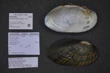 | Keywords: Naturalis Biodiversity Center - ZMA.MOLL.210015 - Lampsilis radiata (Gmelin, 1791) - Unionidae - Mollusc shell.jpeg artwork Dimensions artwork Document type Unionidae subfamily Ambleminae Lampsilis Individual count Infraspecific epithet Infraspecific rank Institution Naturalis Kind of unit artwork Kind of unit specimen shell Life stage United States Ohio Hudson River Medium artwork Nomenclatural code Scale the width of the text on the species/QR-code label is 38 mm Occurrence ID page Other fields Other versions artwork Permission license Naturalis donation CC-0 Mollusca Publication location Scientific name Lampsilis radiata Gmelin 1791 Scientific name authorship Gmelin 1791 Source url http //bioportal naturalis nl Specific epithet radiata State or province Ohio Subject keywords artwork Subject keywords publication Title artwork Title publication Type status Uploaded with GWToolset Naturalis_Biodiversity_Center_-_ZMA MOLL 210015_-_Lampsilis_radiata_ Gmelin _1791 _-_Unionidae_-_Mollusc_shell http //medialib naturalis nl/file/id/ZMA MOLL 210015/format/large Media donated by Naturalis Biodiversity Center Molluscs at Naturalis from the Zoölogisch Museum Amsterdam Lampsilis radiata Lampsilis |