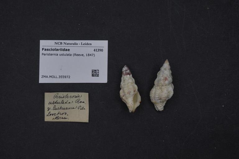 | Keywords: Naturalis Biodiversity Center - ZMA.MOLL.355972 - Peristernia ustulata (Reeve, 1847) - Fasciolariidae - Mollusc shell.jpeg artwork Dimensions artwork Document type Fasciolariidae subfamily Peristerniinae Peristernia Individual count Infraspecific epithet Infraspecific rank Institution Naturalis Kind of unit artwork Kind of unit specimen shell Life stage Medium artwork Nomenclatural code Source institute Zoölogisch Museum Amsterdam Scale the width of the text on the species/QR-code label is 38 mm Occurrence ID page Other fields Other versions artwork Permission license Naturalis donation CC-0 Mollusca Publication location Scientific name Peristernia ustulata Reeve 1847 Scientific name authorship Reeve 1847 Source url http //bioportal naturalis nl Specific epithet ustulata State or province Subject keywords artwork Subject keywords publication Title artwork Title publication Type status Uploaded with GWToolset Naturalis_Biodiversity_Center_-_ZMA MOLL 355972_-_Peristernia_ustulata_ Reeve _1847 _-_Fasciolariidae_-_Mollusc_shell http //medialib naturalis nl/file/id/ZMA MOLL 355972/format/large Media donated by Naturalis Biodiversity Center Molluscs at Naturalis from the Zoölogisch Museum Amsterdam Peristernia ustulata Peristernia |