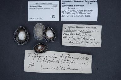 | Keywords: Naturalis Biodiversity Center - ZMA.MOLL.371020 - Siphonaria concinna Sowerby, 1823 - Siphonariidae - Mollusc shell.jpeg artwork Dimensions artwork Document type Siphonariidae Siphonaria Individual count Infraspecific epithet Infraspecific rank Institution Naturalis Kind of unit artwork Kind of unit specimen shell Life stage Medium artwork Nomenclatural code Source institute Zoölogisch Museum Amsterdam Scale the width of the text on the species/QR-code label is 38 mm Occurrence ID page Other fields Other versions artwork Permission license Naturalis donation CC-0 Mollusca Publication location Scientific name Siphonaria concinna Sowerby 1823 Scientific name authorship Sowerby 1823 Source url http //bioportal naturalis nl Specific epithet concinna State or province Subject keywords artwork Subject keywords publication Title artwork Title publication Type status Uploaded with GWToolset Naturalis_Biodiversity_Center_-_ZMA MOLL 371020_-_Siphonaria_concinna_Sowerby _1823_-_Siphonariidae_-_Mollusc_shell http //medialib naturalis nl/file/id/ZMA MOLL 371020/format/large Media donated by Naturalis Biodiversity Center Molluscs at Naturalis from the Zoölogisch Museum Amsterdam Siphonaria concinna Siphonaria |