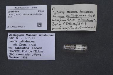 | Keywords: Naturalis Biodiversity Center - ZMA.MOLL.374364 - Lauria (Lauria) cylindracea (Da Costa, 1778) - Lauriidae - Mollusc shell.jpeg artwork Dimensions artwork Document type Lauriidae Lauria Individual count Infraspecific epithet Infraspecific rank Institution Naturalis Kind of unit artwork Kind of unit specimen shell Life stage Medium artwork Nomenclatural code Source institute Rijksmuseum van Natuurlijke Historie Leiden Scale the width of the text on the species/QR-code label is 38 mm Occurrence ID page Other fields Other versions artwork Permission license Naturalis donation CC-0 Mollusca Publication location Scientific name Lauria Lauria cylindracea Da Costa 1778 Scientific name authorship Da Costa 1778 Source url http //bioportal naturalis nl Specific epithet cylindracea State or province Subject keywords artwork Subject keywords publication Title artwork Title publication Type status Uploaded with GWToolset Naturalis_Biodiversity_Center_-_ZMA MOLL 374364_-_Lauria_ Lauria _cylindracea_ Da_Costa _1778 _-_Lauriidae_-_Mollusc_shell http //medialib naturalis nl/file/id/ZMA MOLL 374364/format/large Molluscs at Naturalis from the Zoölogisch Museum Amsterdam Media donated by Naturalis Biodiversity Center Lauria cylindracea Lauria |