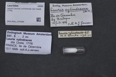 | Keywords: Naturalis Biodiversity Center - ZMA.MOLL.374389 - Lauria (Lauria) cylindracea (Da Costa, 1778) - Lauriidae - Mollusc shell.jpeg artwork Dimensions artwork Document type Lauriidae Lauria Individual count Infraspecific epithet Infraspecific rank Institution Naturalis Kind of unit artwork Kind of unit specimen shell Life stage Medium artwork Nomenclatural code Source institute Rijksmuseum van Natuurlijke Historie Leiden Scale the width of the text on the species/QR-code label is 38 mm Occurrence ID page Other fields Other versions artwork Permission license Naturalis donation CC-0 Mollusca Publication location Scientific name Lauria Lauria cylindracea Da Costa 1778 Scientific name authorship Da Costa 1778 Source url http //bioportal naturalis nl Specific epithet cylindracea State or province Subject keywords artwork Subject keywords publication Title artwork Title publication Type status Uploaded with GWToolset Naturalis_Biodiversity_Center_-_ZMA MOLL 374389_-_Lauria_ Lauria _cylindracea_ Da_Costa _1778 _-_Lauriidae_-_Mollusc_shell http //medialib naturalis nl/file/id/ZMA MOLL 374389/format/large Molluscs at Naturalis from the Zoölogisch Museum Amsterdam Media donated by Naturalis Biodiversity Center Lauria cylindracea Lauria |