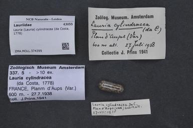 | Keywords: Naturalis Biodiversity Center - ZMA.MOLL.374399 - Lauria (Lauria) cylindracea (Da Costa, 1778) - Lauriidae - Mollusc shell.jpeg artwork Dimensions artwork Document type Lauriidae Lauria Individual count Infraspecific epithet Infraspecific rank Institution Naturalis Kind of unit artwork Kind of unit specimen shell Life stage Medium artwork Nomenclatural code Source institute Rijksmuseum van Natuurlijke Historie Leiden Scale the width of the text on the species/QR-code label is 38 mm Occurrence ID page Other fields Other versions artwork Permission license Naturalis donation CC-0 Mollusca Publication location Scientific name Lauria Lauria cylindracea Da Costa 1778 Scientific name authorship Da Costa 1778 Source url http //bioportal naturalis nl Specific epithet cylindracea State or province Subject keywords artwork Subject keywords publication Title artwork Title publication Type status Uploaded with GWToolset Naturalis_Biodiversity_Center_-_ZMA MOLL 374399_-_Lauria_ Lauria _cylindracea_ Da_Costa _1778 _-_Lauriidae_-_Mollusc_shell http //medialib naturalis nl/file/id/ZMA MOLL 374399/format/large Molluscs at Naturalis from the Zoölogisch Museum Amsterdam Media donated by Naturalis Biodiversity Center Lauria cylindracea Lauria |