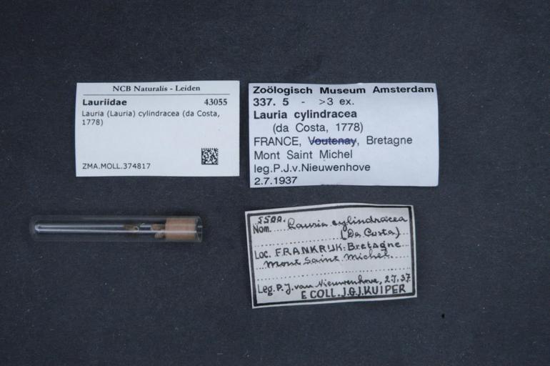 | Keywords: Naturalis Biodiversity Center - ZMA.MOLL.374817 - Lauria (Lauria) cylindracea (Da Costa, 1778) - Lauriidae - Mollusc shell.jpeg artwork Dimensions artwork Document type Lauriidae Lauria Individual count Infraspecific epithet Infraspecific rank Institution Naturalis Kind of unit artwork Kind of unit specimen shell Life stage Medium artwork Nomenclatural code Source institute Rijksmuseum van Natuurlijke Historie Leiden Scale the width of the text on the species/QR-code label is 38 mm Occurrence ID page Other fields Other versions artwork Permission license Naturalis donation CC-0 Mollusca Publication location Scientific name Lauria Lauria cylindracea Da Costa 1778 Scientific name authorship Da Costa 1778 Source url http //bioportal naturalis nl Specific epithet cylindracea State or province Subject keywords artwork Subject keywords publication Title artwork Title publication Type status Uploaded with GWToolset Naturalis_Biodiversity_Center_-_ZMA MOLL 374817_-_Lauria_ Lauria _cylindracea_ Da_Costa _1778 _-_Lauriidae_-_Mollusc_shell http //medialib naturalis nl/file/id/ZMA MOLL 374817/format/large Molluscs at Naturalis from the Zoölogisch Museum Amsterdam Media donated by Naturalis Biodiversity Center Lauria cylindracea Lauria |