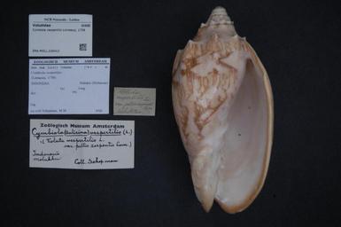 | Keywords: Naturalis Biodiversity Center - ZMA.MOLL.226412 - Cymbiola vespertilio Linnaeus, 1758 - Volutidae - Mollusc shell.jpeg artwork Dimensions artwork Document type Volutidae Cymbiola Individual count Infraspecific epithet Infraspecific rank Institution Naturalis Kind of unit artwork Kind of unit specimen shell Life stage Medium artwork Nomenclatural code Scale the width of the text on the species/QR-code label is 38 mm Occurrence ID page Neogastropoda Other fields Other versions artwork Permission license Naturalis donation CC-0 Mollusca Publication location Scientific name Cymbiola vespertilio Linnaeus 1758 Scientific name authorship Linnaeus 1758 Source url http //bioportal naturalis nl Specific epithet vespertilio State or province Subject keywords artwork Subject keywords publication Title artwork Title publication Type status Uploaded with GWToolset Naturalis_Biodiversity_Center_-_ZMA MOLL 226412_-_Cymbiola_vespertilio_Linnaeus _1758_-_Volutidae_-_Mollusc_shell http //medialib naturalis nl/file/id/ZMA MOLL 226412/format/large Media donated by Naturalis Biodiversity Center Molluscs at Naturalis from the Zoölogisch Museum Amsterdam Cymbiola vespertilio Cymbiola |