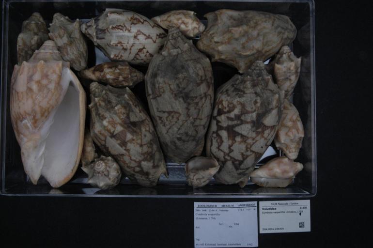 | Keywords: Naturalis Biodiversity Center - ZMA.MOLL.226419 - Cymbiola vespertilio Linnaeus, 1758 - Volutidae - Mollusc shell.jpeg artwork Dimensions artwork Document type Volutidae Cymbiola Individual count Infraspecific epithet Infraspecific rank Institution Naturalis Kind of unit artwork Kind of unit specimen shell Life stage Medium artwork Nomenclatural code Scale the width of the text on the species/QR-code label is 38 mm Occurrence ID page Neogastropoda Other fields Other versions artwork Permission license Naturalis donation CC-0 Mollusca Publication location Scientific name Cymbiola vespertilio Linnaeus 1758 Scientific name authorship Linnaeus 1758 Source url http //bioportal naturalis nl Specific epithet vespertilio State or province Subject keywords artwork Subject keywords publication Title artwork Title publication Type status Uploaded with GWToolset Naturalis_Biodiversity_Center_-_ZMA MOLL 226419_-_Cymbiola_vespertilio_Linnaeus _1758_-_Volutidae_-_Mollusc_shell http //medialib naturalis nl/file/id/ZMA MOLL 226419/format/large Media donated by Naturalis Biodiversity Center Molluscs at Naturalis from the Zoölogisch Museum Amsterdam Cymbiola vespertilio Cymbiola |