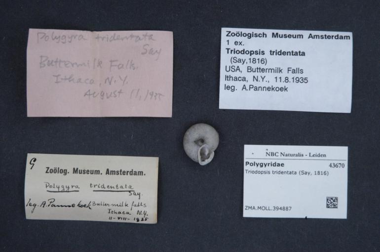 | Keywords: Naturalis Biodiversity Center - ZMA.MOLL.394887 - Triodopsis tridentata (Say, 1816) - Polygyridae - Mollusc shell.jpeg artwork Dimensions artwork Document type Polygyridae subfamily Triodopsinae Triodopsis Individual count Infraspecific epithet Infraspecific rank Institution Naturalis Kind of unit artwork Kind of unit specimen shell Life stage Medium artwork Nomenclatural code Source institute Rijksmuseum van Natuurlijke Historie Leiden Scale the width of the text on the species/QR-code label is 38 mm Occurrence ID page Other fields Other versions artwork Permission license Naturalis donation CC-0 Mollusca Publication location Scientific name Triodopsis tridentata Say 1816 Scientific name authorship Say 1816 Source url http //bioportal naturalis nl Specific epithet tridentata State or province Subject keywords artwork Subject keywords publication Title artwork Title publication Type status Uploaded with GWToolset Naturalis_Biodiversity_Center_-_ZMA MOLL 394887_-_Triodopsis_tridentata_ Say _1816 _-_Polygyridae_-_Mollusc_shell http //medialib naturalis nl/file/id/ZMA MOLL 394887/format/large Molluscs at Naturalis from the Zoölogisch Museum Amsterdam Media donated by Naturalis Biodiversity Center Triodopsis tridentata Triodopsis |
